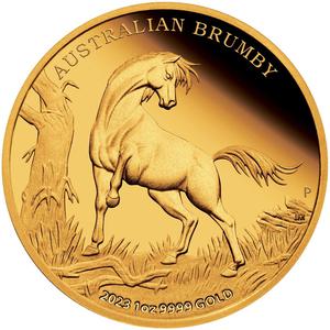 Золотая монета 100 долларов "Австралийский Брамби" 2023г., Австралия, 31,1г., Au 9999