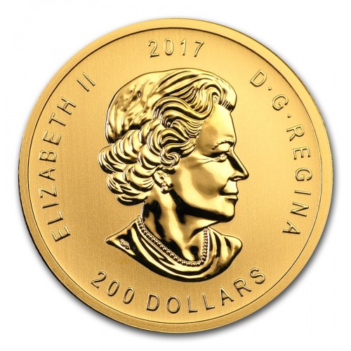 • На аверсе изображен портрет королевы Елизаветы II, созданный Сюзанной Блант. Под портретом обозначен номинал монеты – «200 DOLLARS» (200 долларов). По ободу слева и справа от портрета помещены надписи – «ELIZABETH II» (Елизавета II) и «D G REGINA» (Милостью Божьей Королева). Вверху над портретом указан год выпуска монеты – «2017».