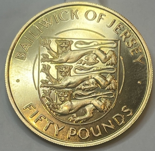 Золотая монета 50 фунтов "25-летие свадьбы Елизаветы II и принца Филиппа" 1972г., Au 917, 22,760г.