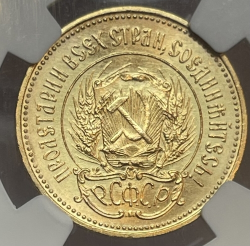 Золотая монета Червонец Сеятель 1923 г. в слабе NGC MS 64